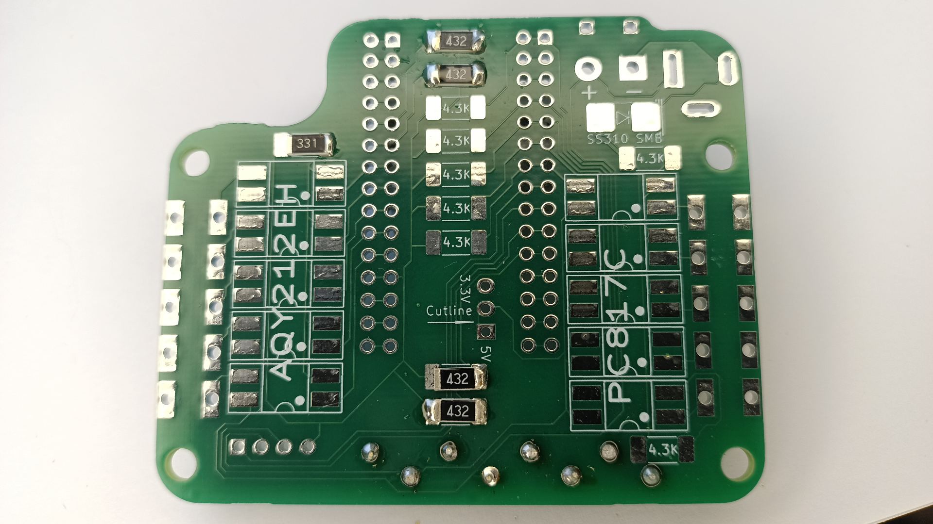 Visuaalne järelkontroll Kontrolli kindlasti üle, et kõik klemmliistude kontaktid on joodetud ja mitte ühtegi ei ole vahele jäänud. Näidiseks pilt, millel on üks klemm jäänud jootmata, ega anna korralikku kontakti. |