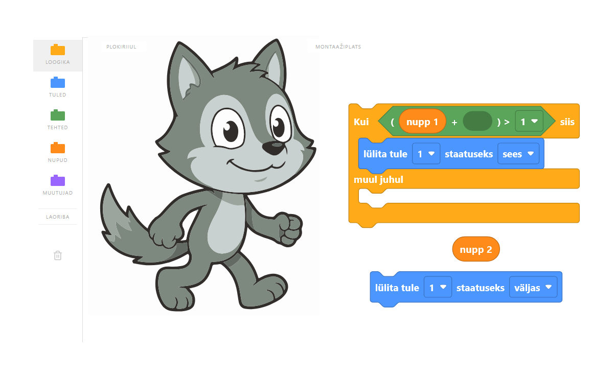 Selleks, et teha esimest tutvust matemaatilise loogikaga ja saada aru, kuidas mikrokontroller hindab tingimuslauseid tõesteks, on Hundi Hugo meisterdanud inseneerialabori, milles saab programmikoodi luua värvilisi plokke kuju poolest üksteise külge haakides.
